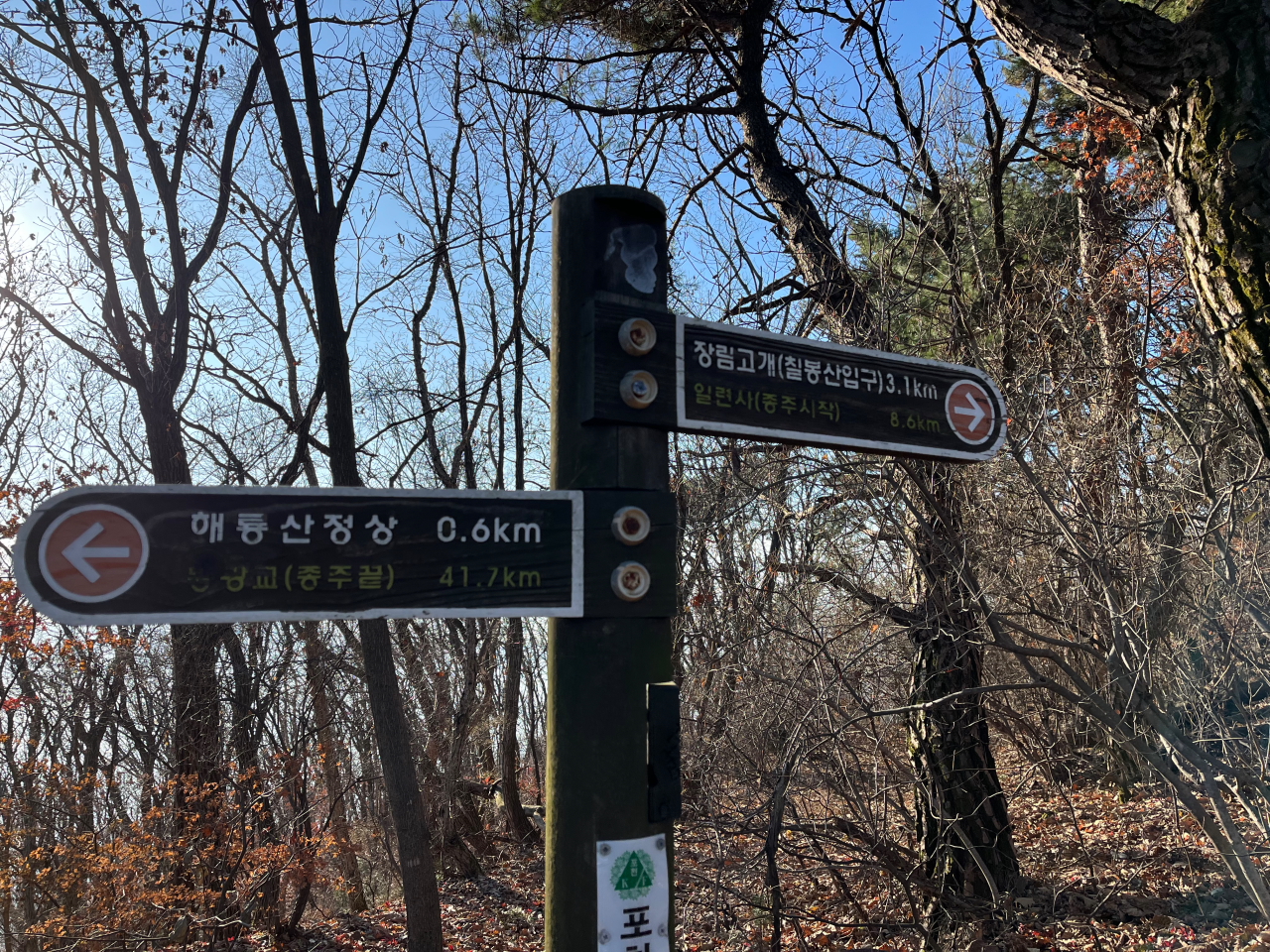 ^ 난이도가 높은 급경사 언덕을 올라 해룡산 정상은 0.6km 전방,