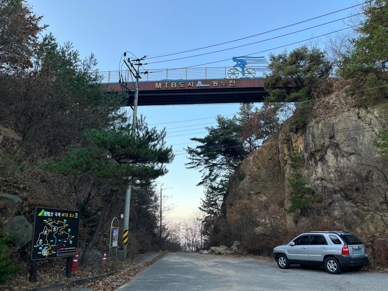 ^ 왕방산 국제 MTB코스인 장림고개에 주차를 하고 해룡산 산행을 시작하게 된다.